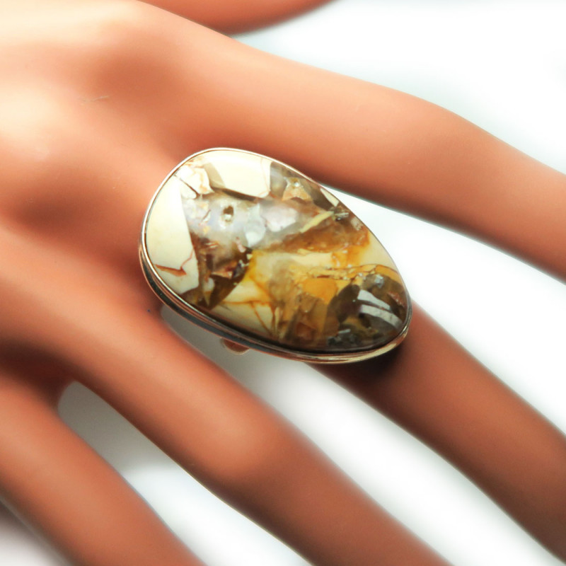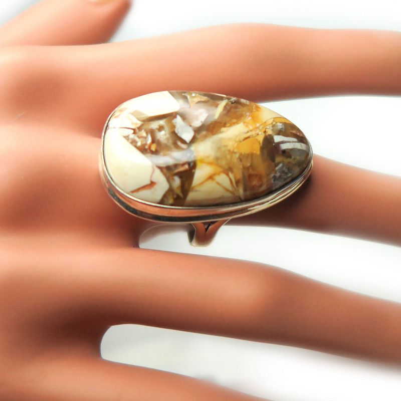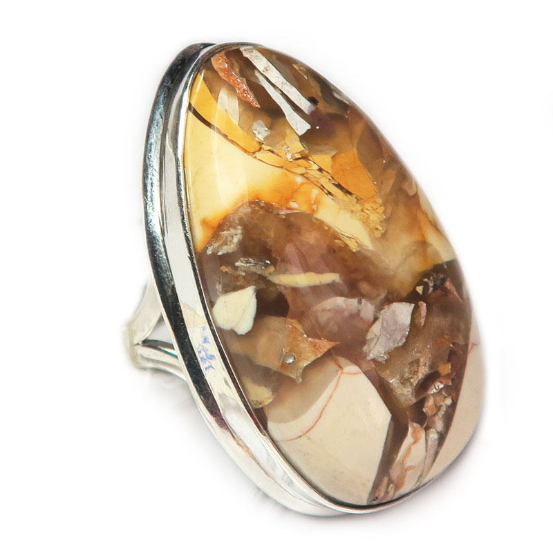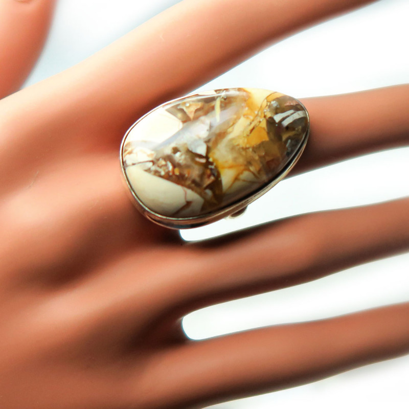 Кольцо с яшмой, камень без огранки, размер кольца 19, размер камня в кольце 3.5*2 см., вес кольца 13 гр., металл серебро, производство Индия.