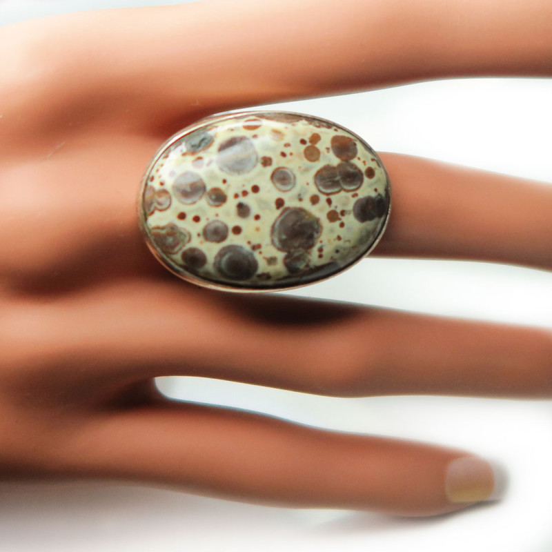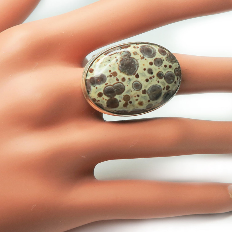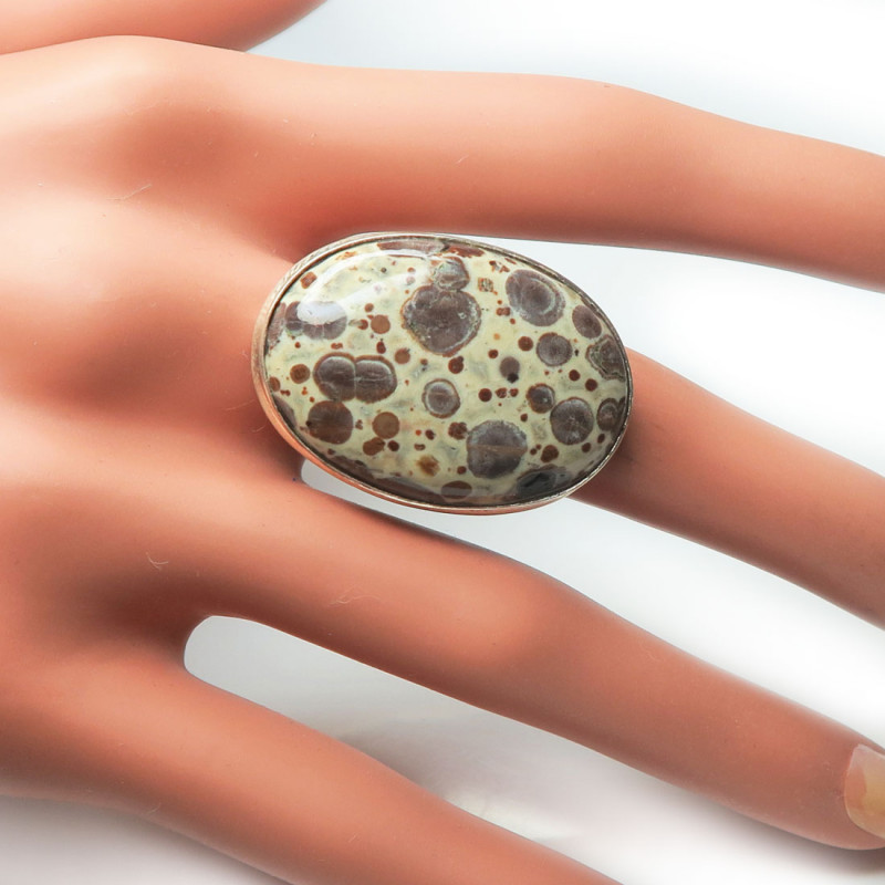 Кольцо с яшмой, камень без огранки, размер кольца 19, размер камня в кольце 3.2*2.3 см., вес кольца 10.7 гр., металл серебро, производство Индия.