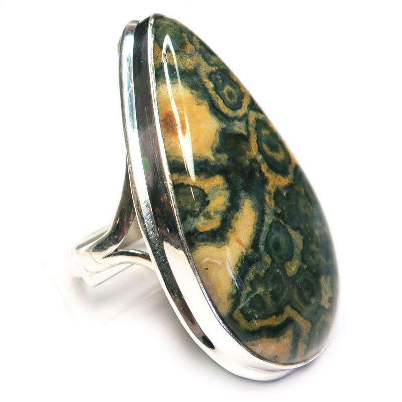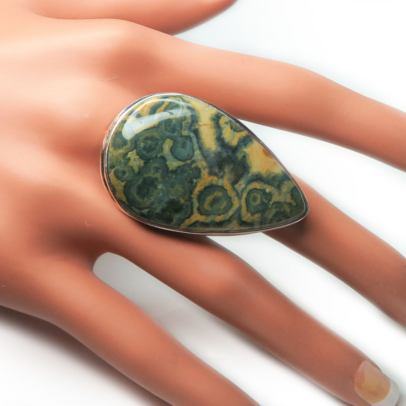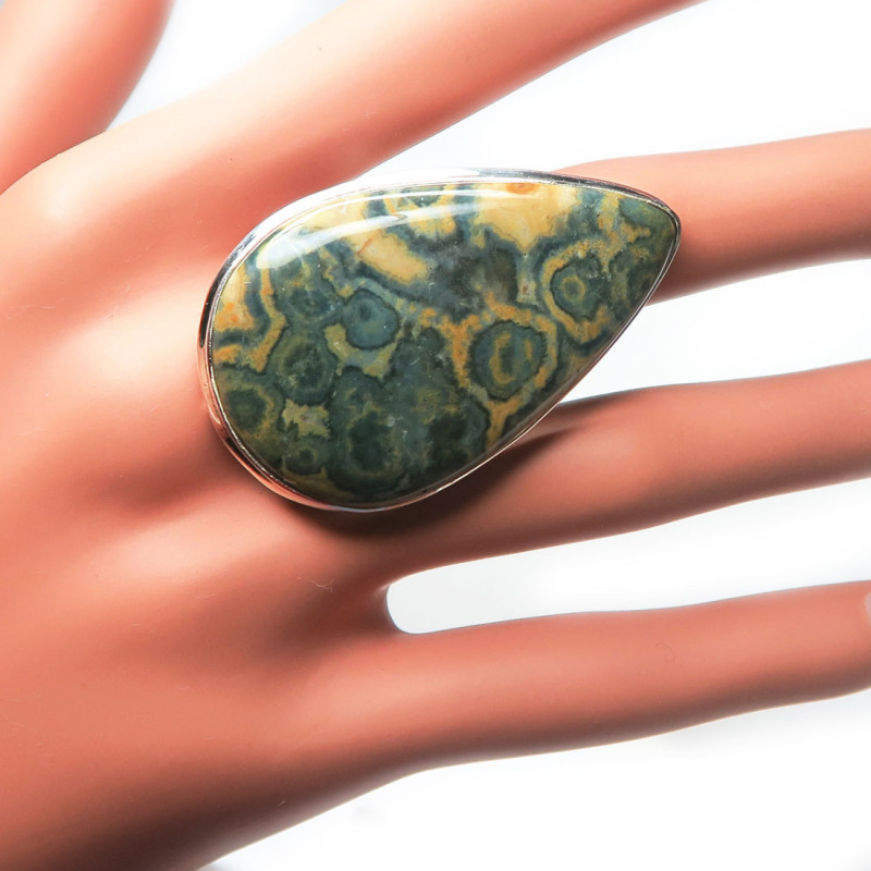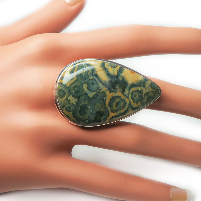 Крупное кольцо с яшмой, размер кольца 19.75, размер камня в кольце 2.5*4.2 см., серебро, вес кольца 16.3 гр., производство Индия.