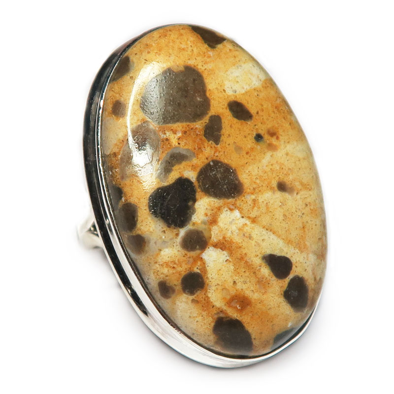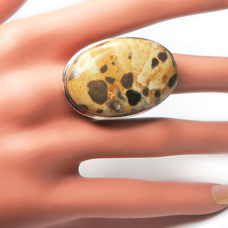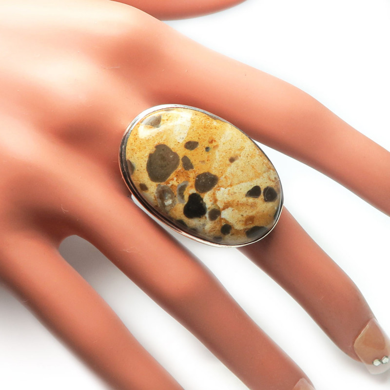 Кольцо с яшмой, размер кольца 19, размер камня в кольце 3.8*2.5 см., металл серебро, вес кольца 14.9 гр., производство Индия.